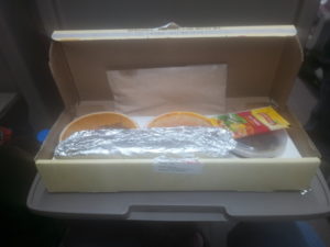 The staff greets you as they arrive at your seat to give you a water bottle. That is where it starts. It is followed by tea and biscuits. It was already night when I boarded it and it was time for dinner.